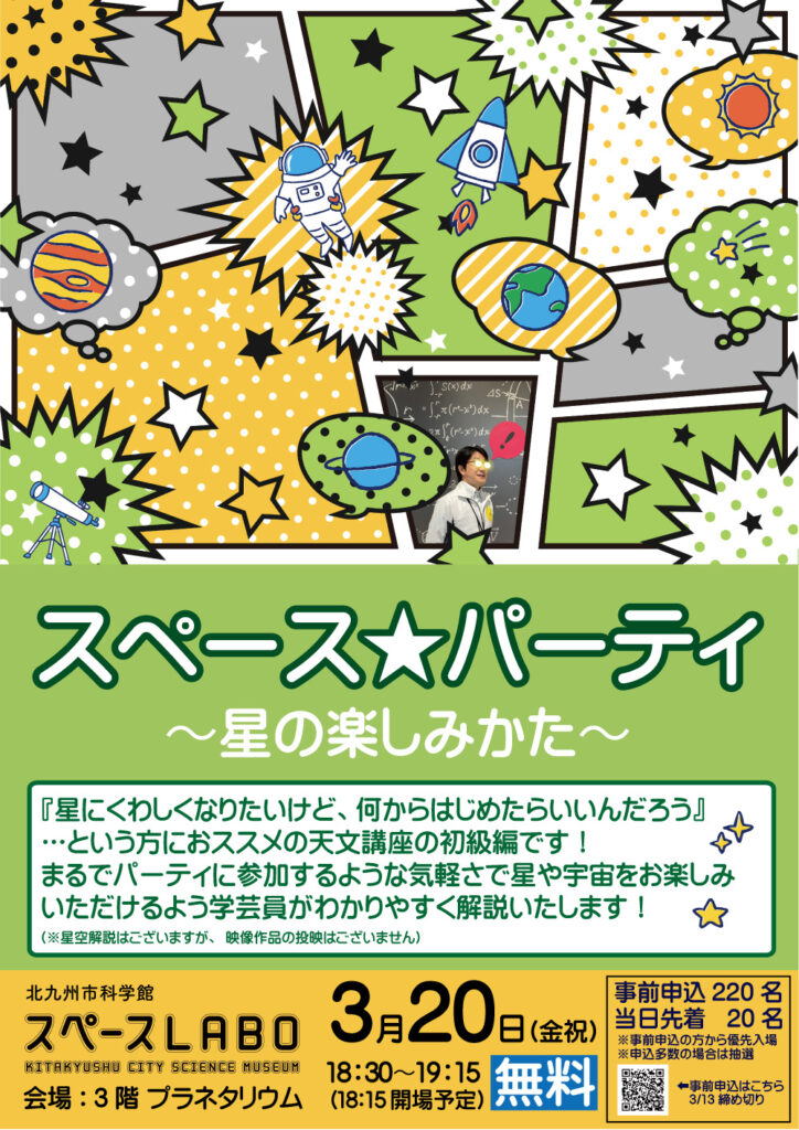 (3/20)プラネタリウム特別投映「スペース★パーティ」開催のおしらせ
