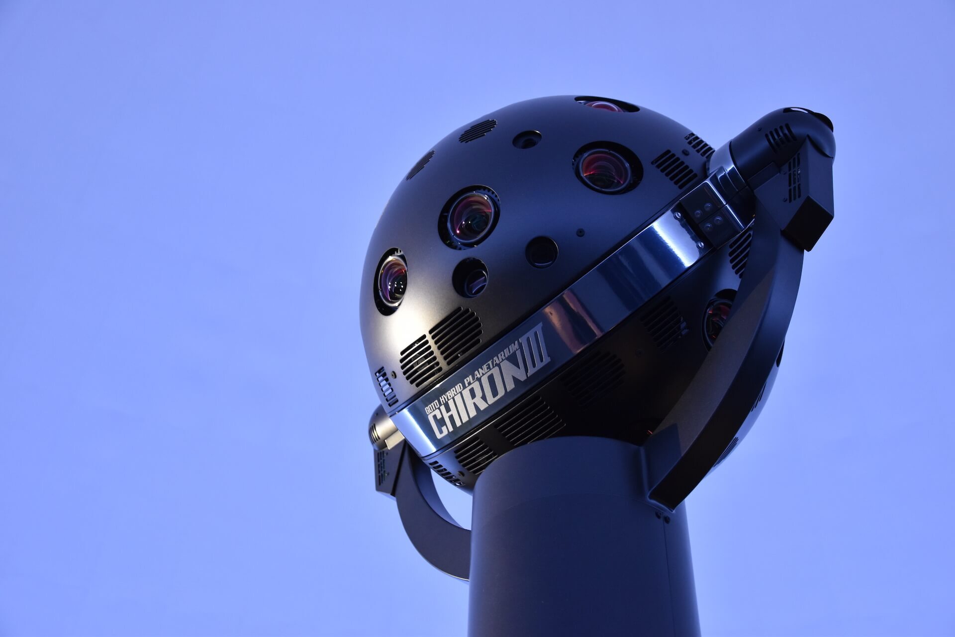 直径がわずか48cmでありながら、より本物に近い星空の再現にこだわり、自然で美しい星空を追求した光学式プラネタリウム投映機「CHIRONIII(ケイロンスリー)」を設置。明るくシャープな主恒星は、 3.5 等級よりも明るい約 300 個の恒星に、固有の色が付加されています。天の川は約1億個の微恒星で描かれ、300 以上の星雲星団、2000 以上の暗黒星雲がリアルに再現されています。また、季節や天候などにより異なる星の瞬きや、暮れなずむ空に輝き始める星々を、実際の星空のように楽しめます。